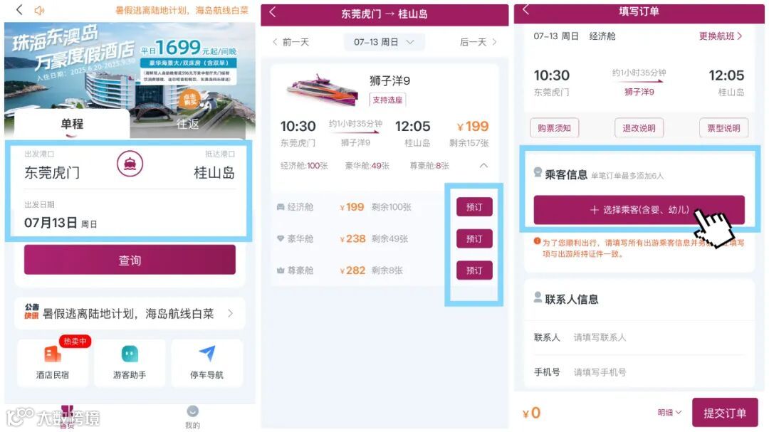 根据以下步骤进入“乘客信息”填写页面