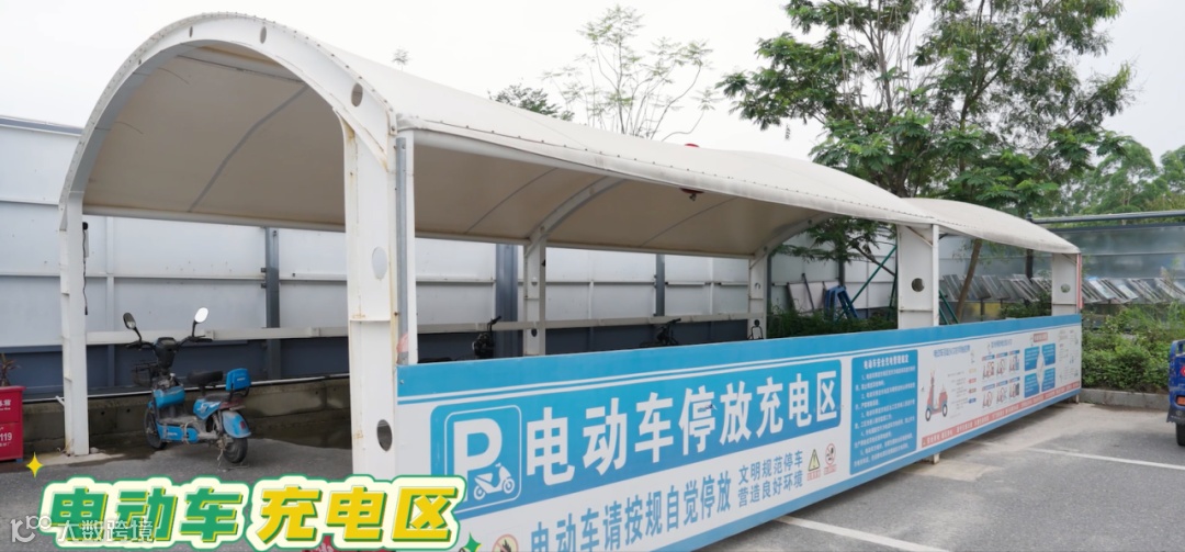 “为方便工人的出行,我们还配置电动车停放充电区,为他们提供充电服务,电动车集中停放起来也更安全、更整洁。”陈瀚轩介绍,工地还配备了工人休息室、垃圾分类箱、洗手间等配套设施,场地内实行机非隔离,配备休息室便于工人憩息,各类物资整洁存放在室内,配电箱用隔离栏作保护,营造安全、便利、干净的施工环境。