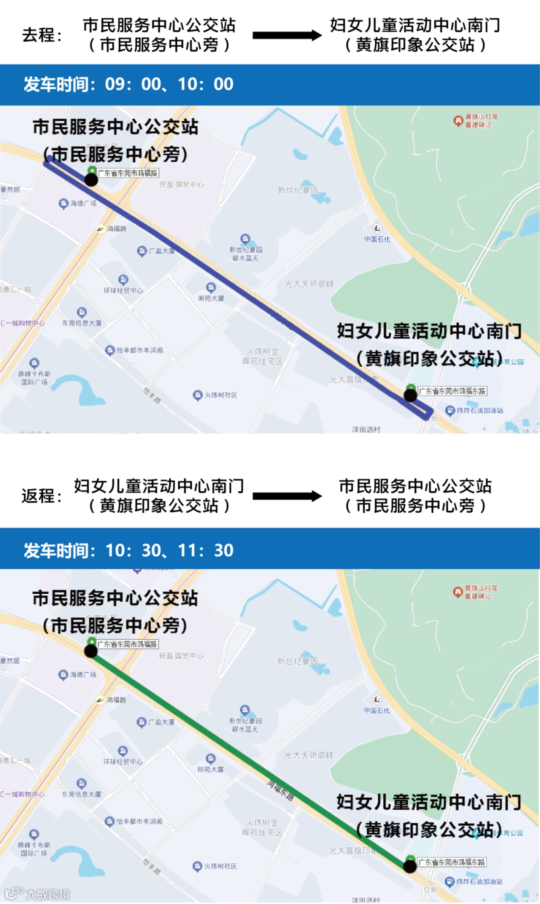 妇女儿童活动中心南门(黄旗印象公交站):10:30、11:30