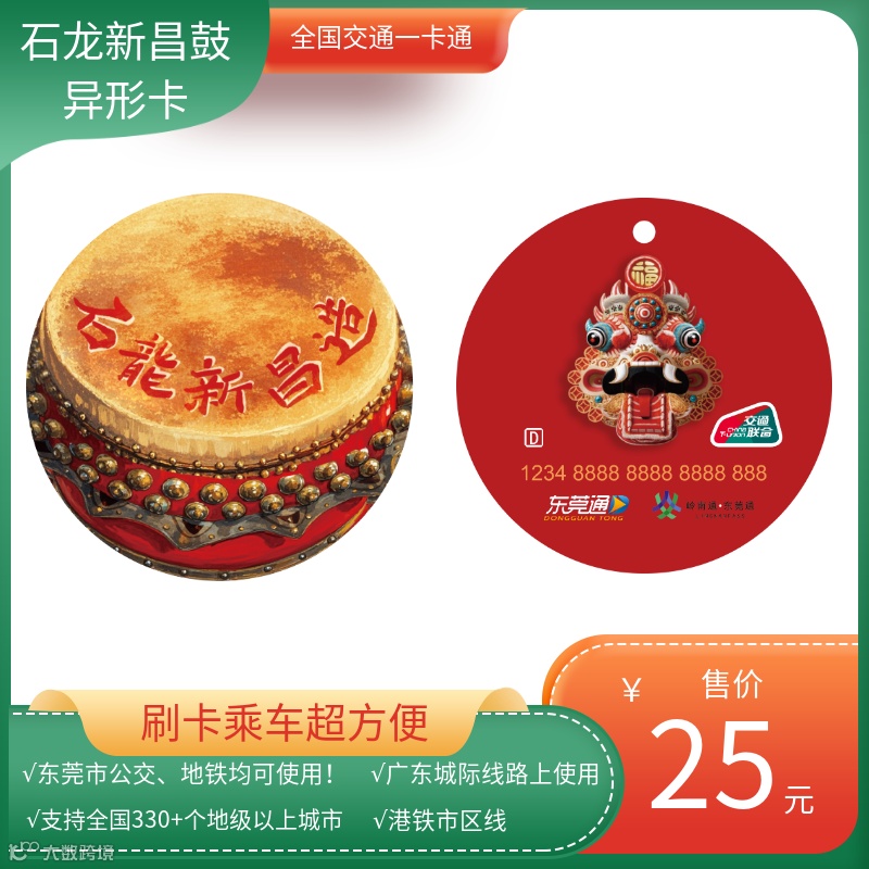 石龙新昌鼓异形卡(全国交通一卡通),不仅可以挂在包包、钥匙扣,还支持多种场景出行,具体参考下表