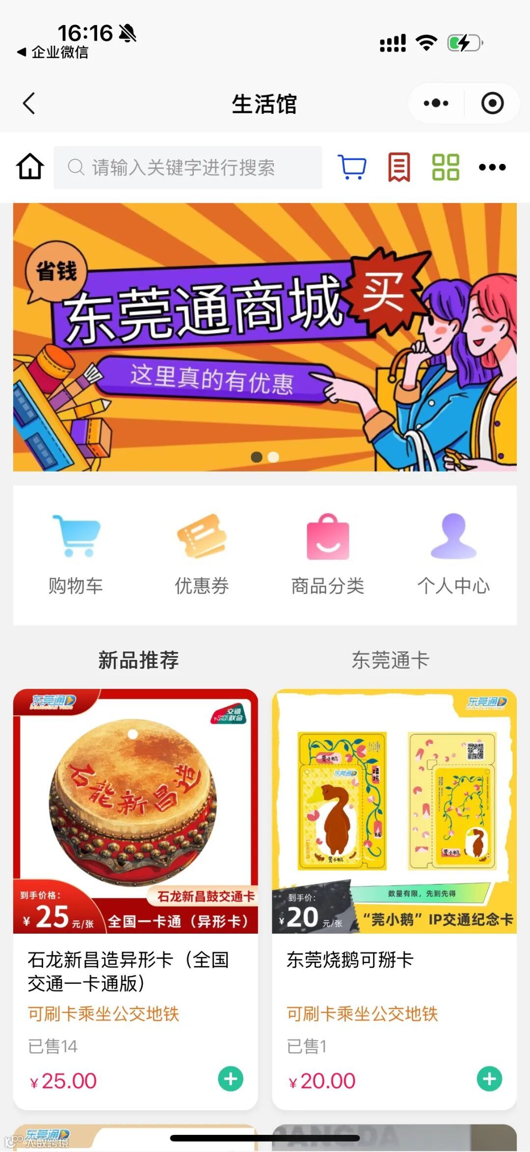 1️⃣扫描二维码进入东莞通【商城】小程序