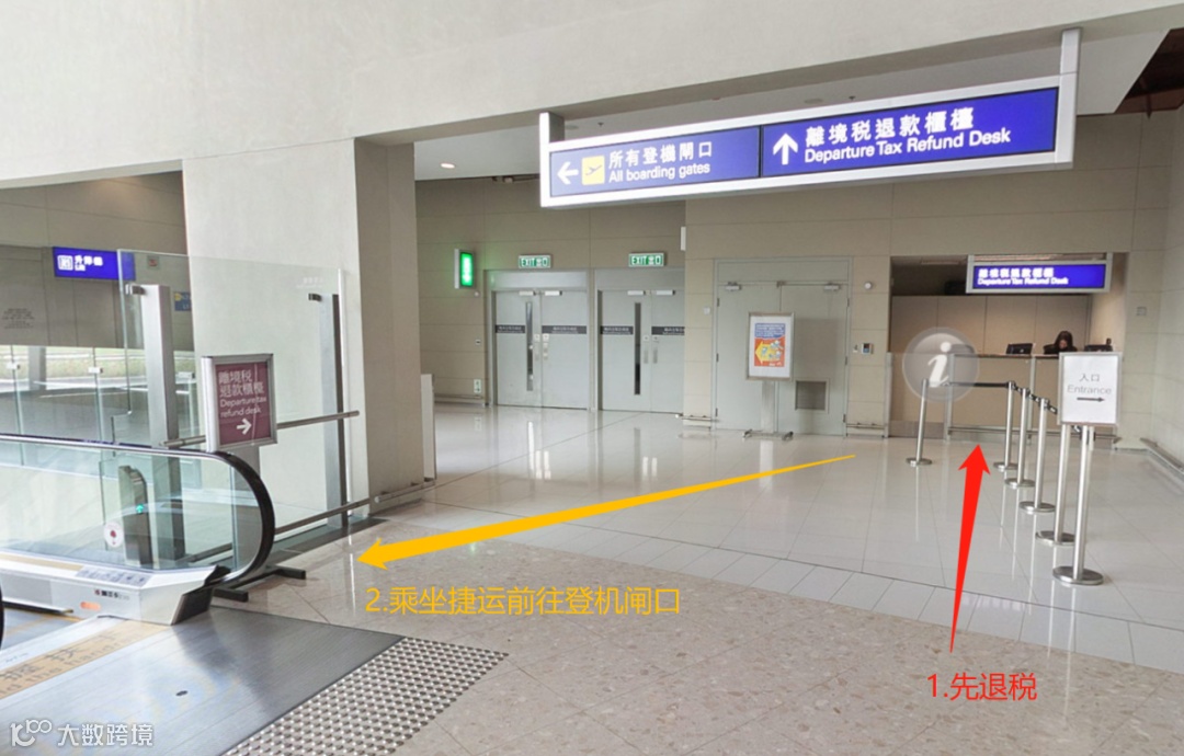 抵达香港国际机场后直接过安检,凭退税券到退税柜台领取现金120港币现金。