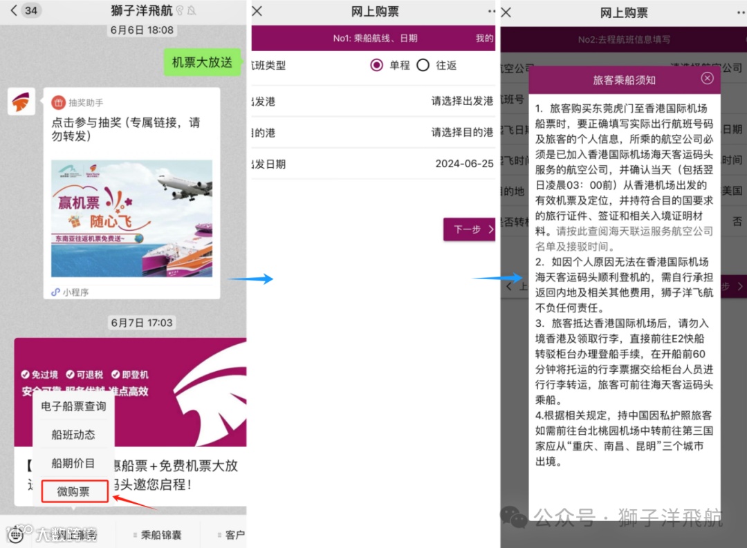 * 微信平台购票:用户需关注公众号,点击→“网上服务”→“微购票”,轻松搞定。(别忘了阅读乘船须知哦!)