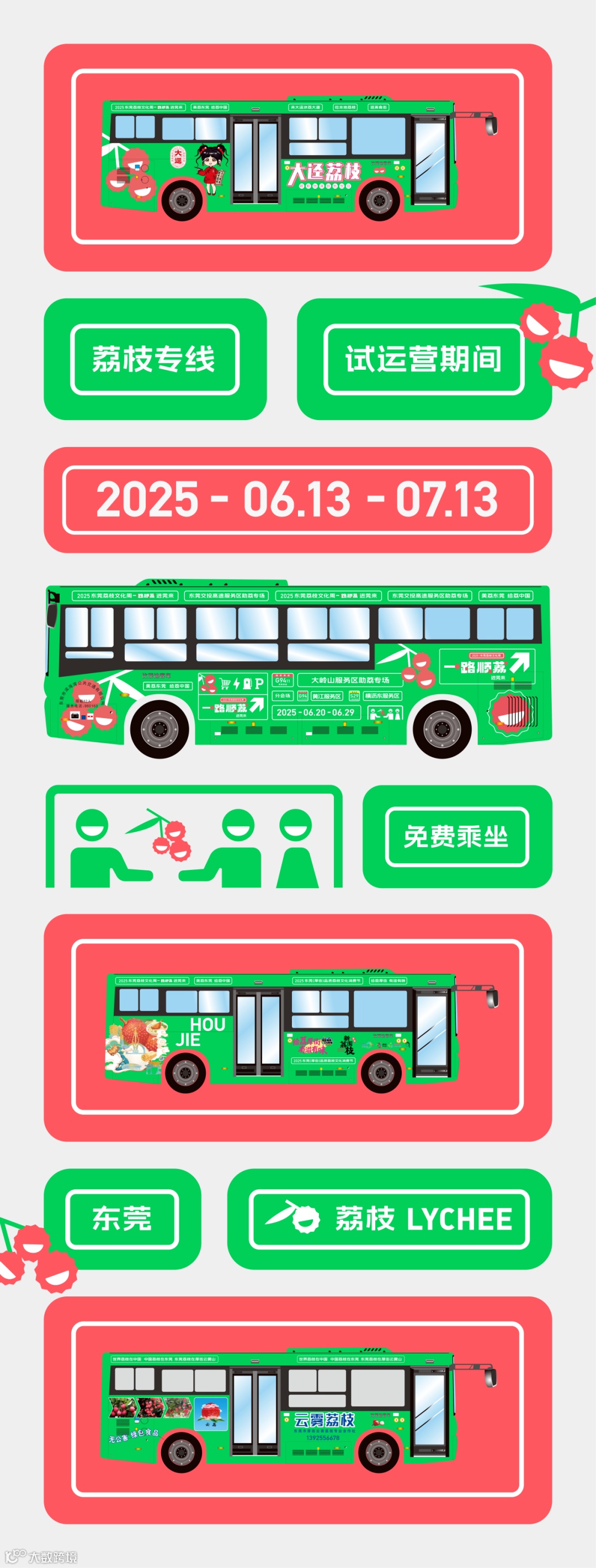 特别开通5条免费荔枝巴士专线