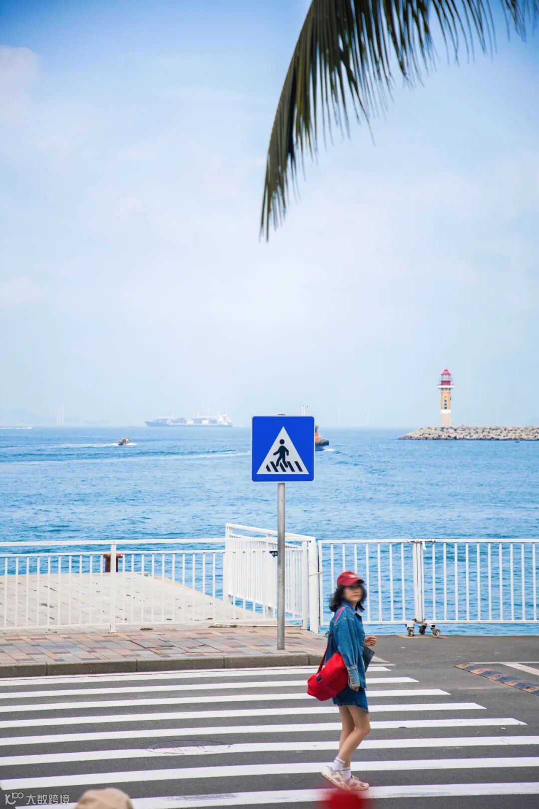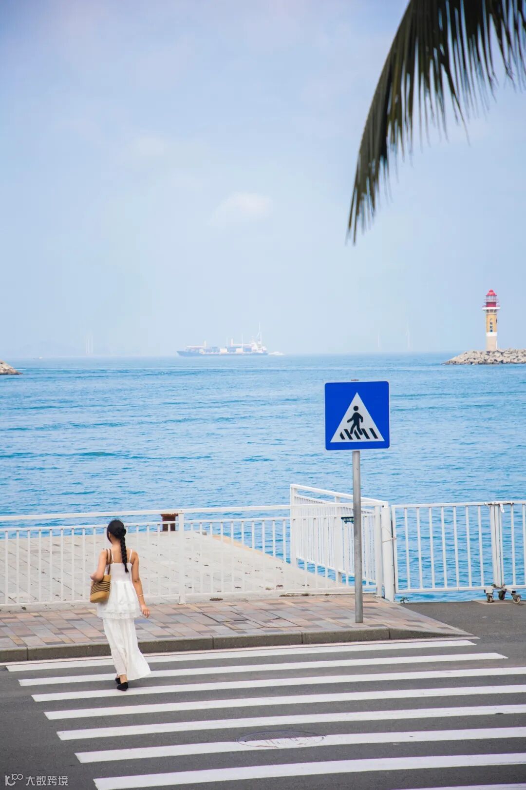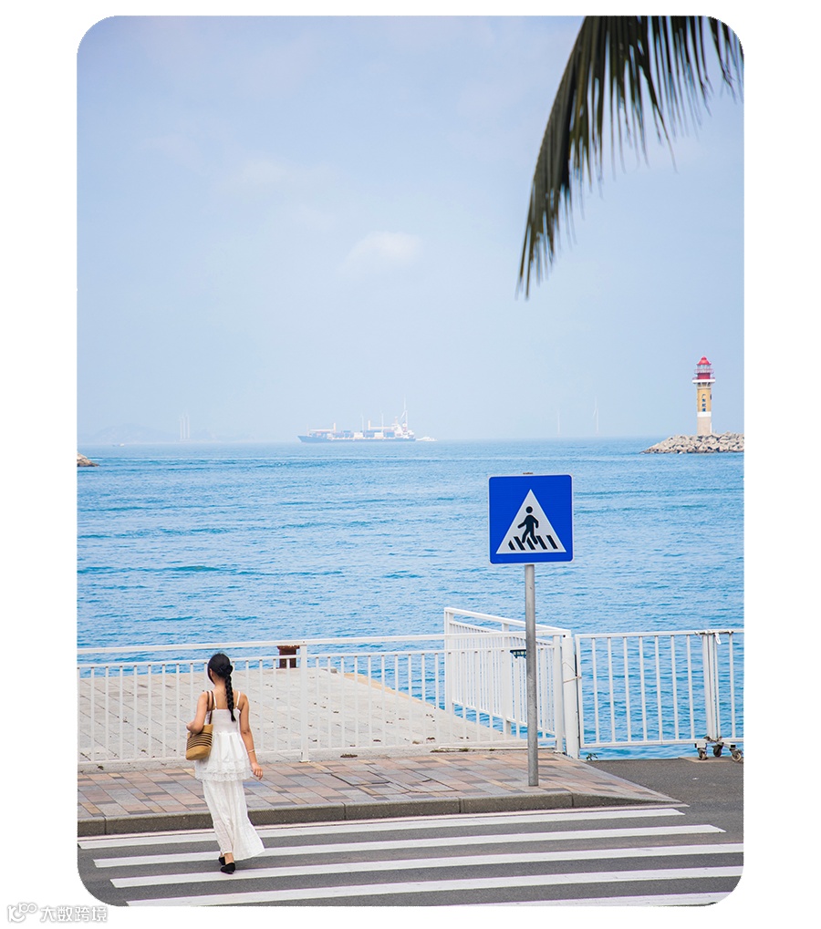 走下来便到了社交平台火出圈的海边斑马线,都不用特意凹造型,站在路上就是清新的日杂封面既视感~