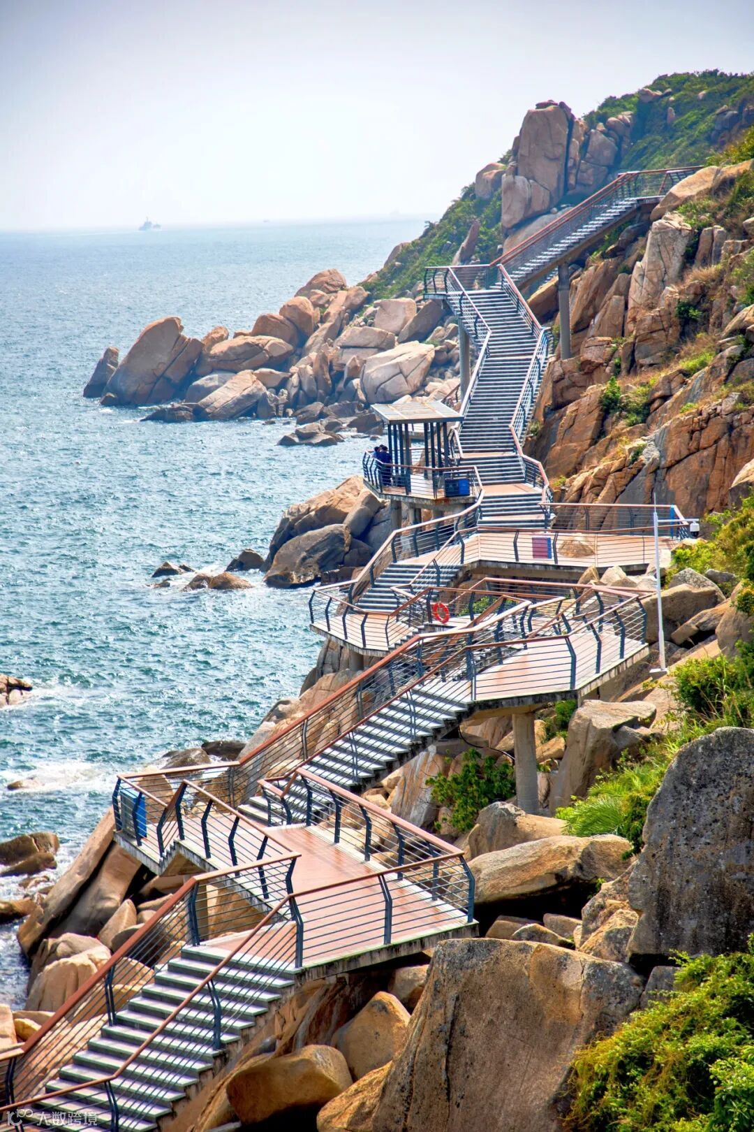 飞鹰驿站,是东澳岛上风景绝佳的驿站之一,架于山海之间,视野非常开阔,站在这里,汪洋大海的壮阔感扑面而来,烦恼在海风里消散,目之所及皆美得不真实。