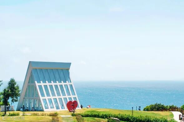 蓝天、草地、大海,环绕一座白色婚礼堂,