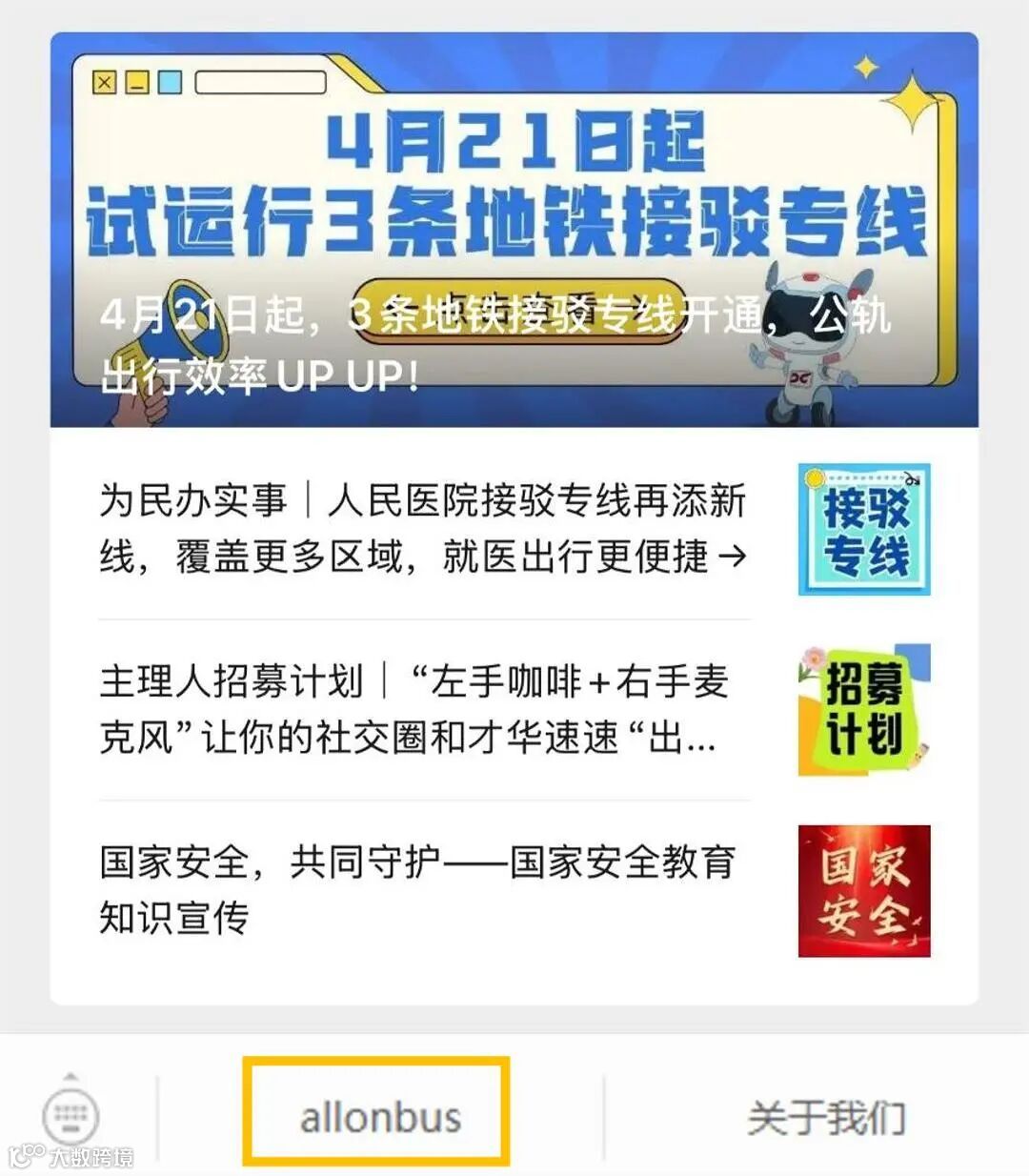在微信搜一搜“all on bus”