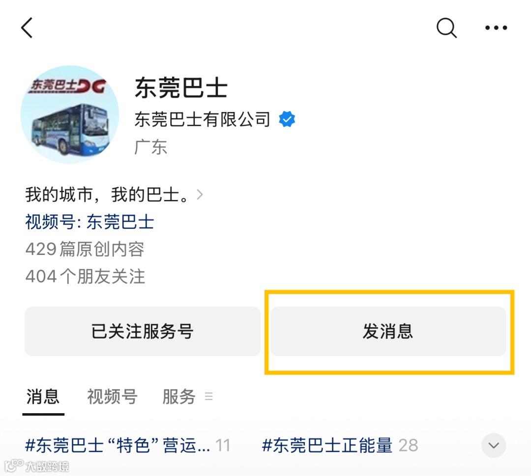 “东莞巴士”公众号一键进入小程序