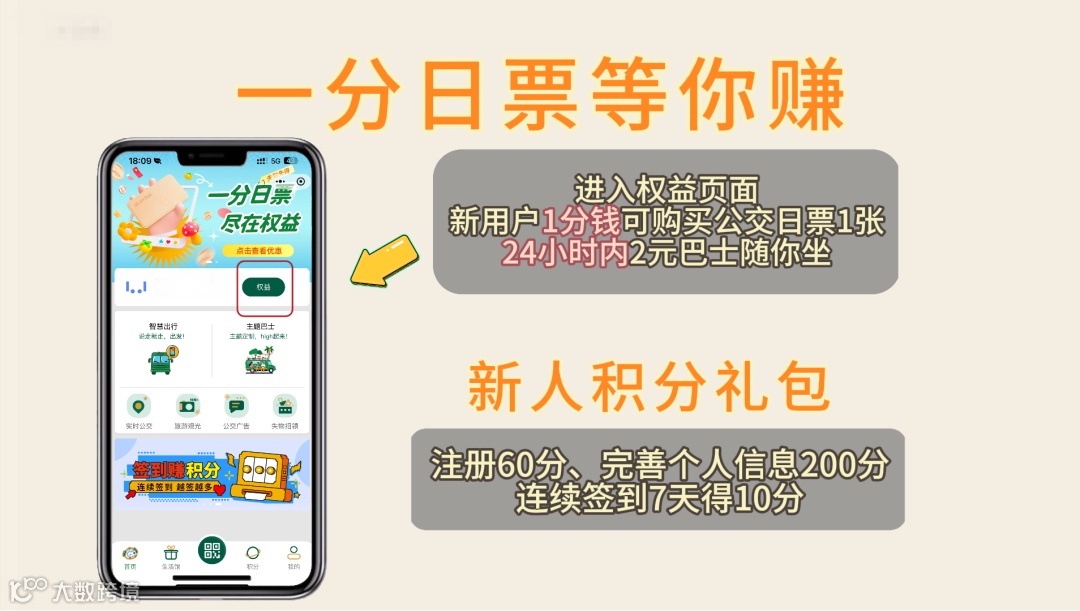 注册后即享0.01元购公交日票1张