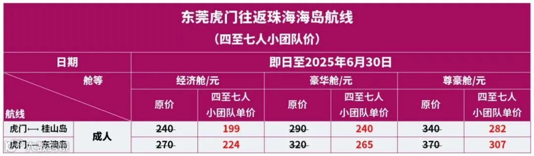 本活动优惠由虎门港澳客运有限公司与合作商家共同协调提供,具体服务内容及价格以顾客与商家实际协商为准。我司不参与商家交易环节,亦不收取任何服务佣金,旨在为旅客争取更多出行便利。