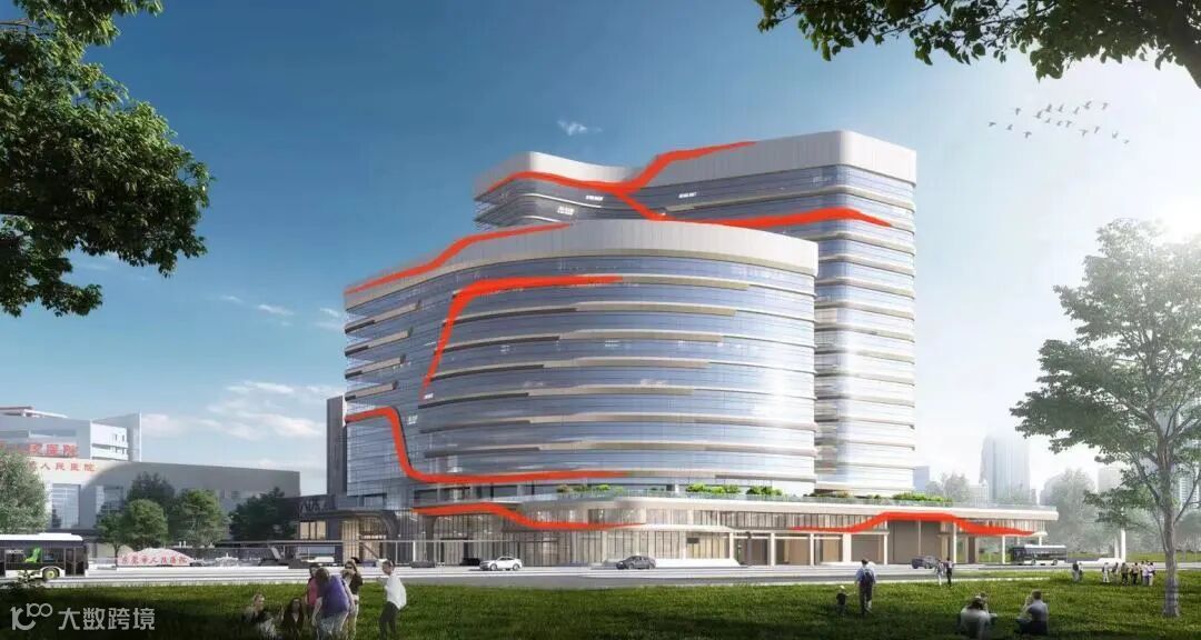 交通出行改善。院区建筑间还特别设置了连廊慢行系统,即便在风雨天气,市民也能畅通无阻地直达各功能区域,实现“风雨无阻,就医畅通”。通过“医疗+交通”TID一体化设计,项目可实现公交首末站、地铁与医院无缝衔接。地铁方面,市民乘坐地铁到站后,可直接通过电梯或者下沉广场直达门诊大楼、急救中心及科教中心等区域。公交方面,采用人性化的公交首末站设计,大大提高居民出行便利性、提升城市公共交通系统效率。小汽车出行方面,送人车辆到达地下负一层“即停即走”区域落客后,市民可直接乘坐电梯到达门诊大楼、急救中心及科教中心等区域,快捷便利。此外,地下空间项目设置了2层地下车库,建筑面积约6.19万㎡,增设约1200个车位,将有效缓解当前就医停车难题。