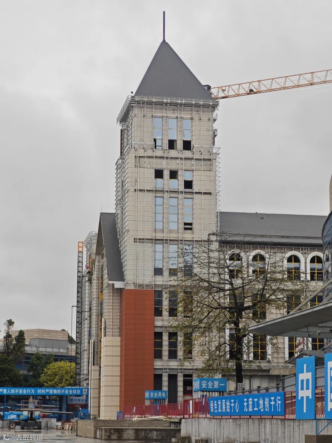 “红楼”正在进行幕墙安装工作