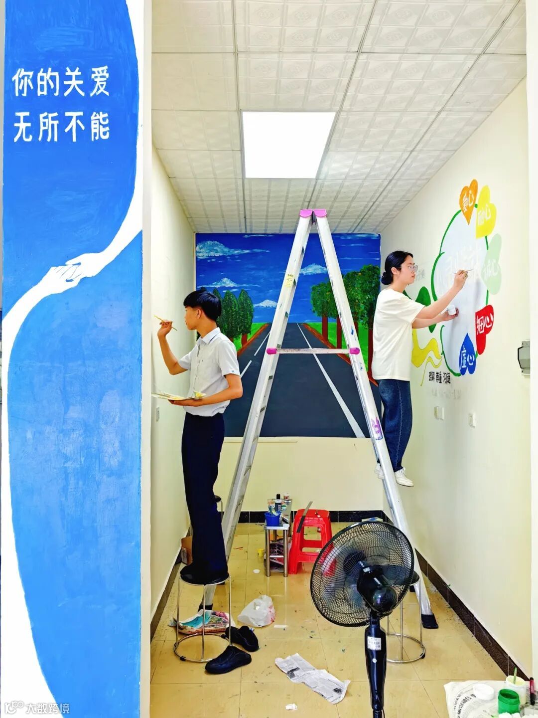组织员工自主手绘主题墙