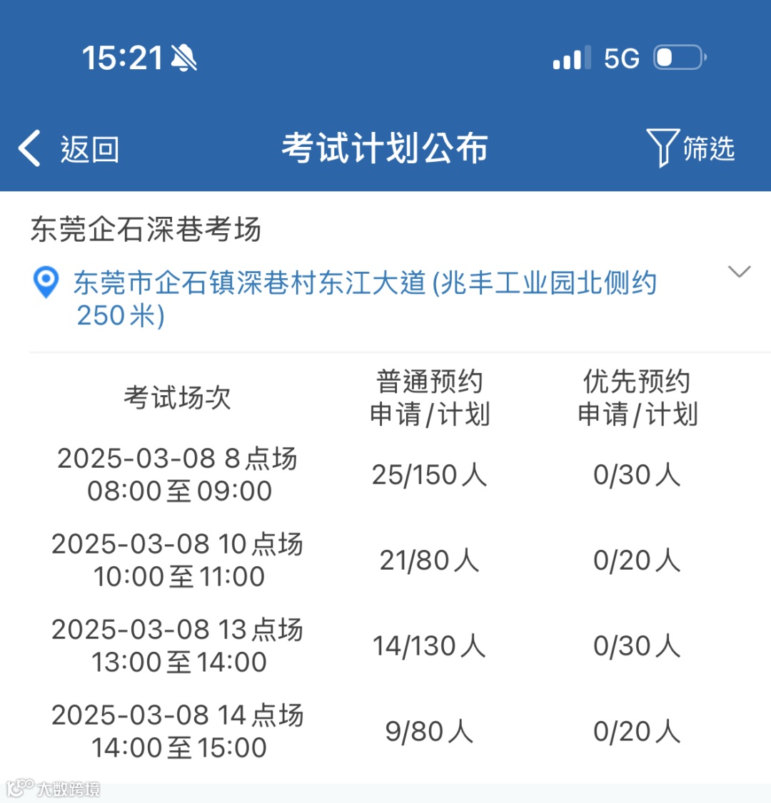 小编了解到,企石深巷考场全科目周六专场考试同样可通过“交管12123”APP办理预约,非常方便、快捷!需求旺盛的科目三路考已率先公布了周六专场考试计划,各位上班族考生本周即可预约3月8日专场,建议预约的场次尽量选择当日下午场如13点场、14点场,预约成功率更高。