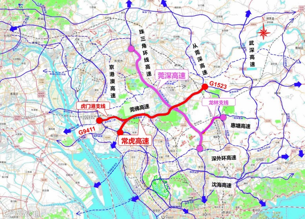 常虎高速作为与狮子洋过江通道连通的重要道路,使东莞、惠州能更好地连通南沙这个粤港澳大湾区的地理几何中心,并与西侧广中江高速,东侧甬莞(惠常)高速一起,构筑横贯南沙、辐射粤东西两翼地区的高速公路网络。此外,常虎高速改扩建工程完成后将进一步完善东莞市内道路网络,提升东莞骨干路网通行能力和服务水平,缓解交通拥堵现状,为东莞高质量发展提供坚实的交通支撑,对推动东莞交通一体化进程、进一步融入大湾区综合交通网具有十分重要的意义。