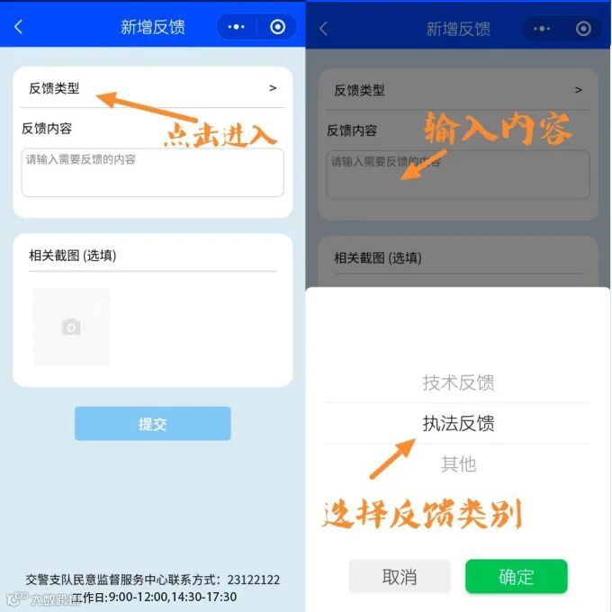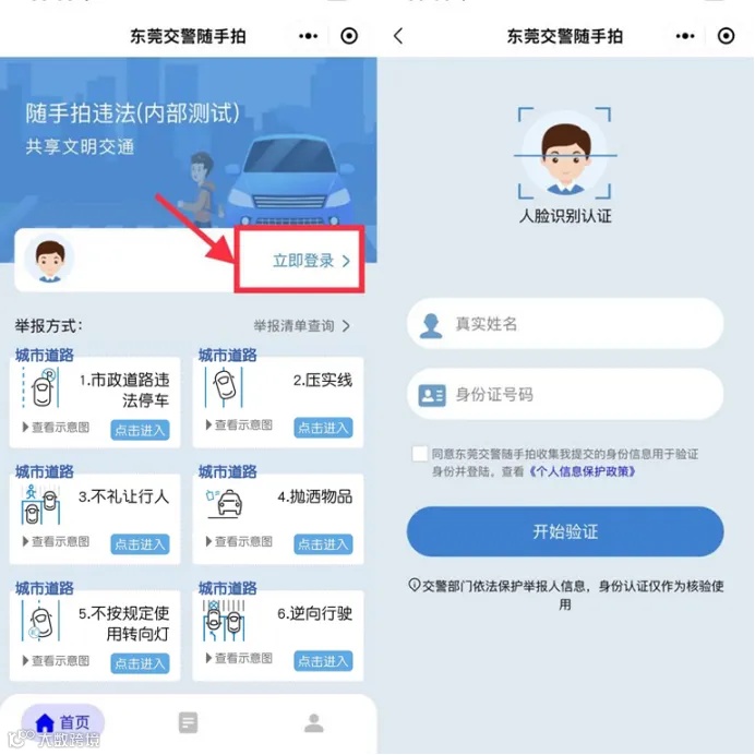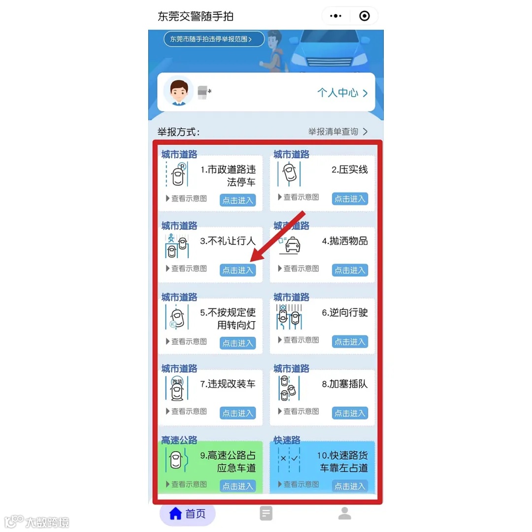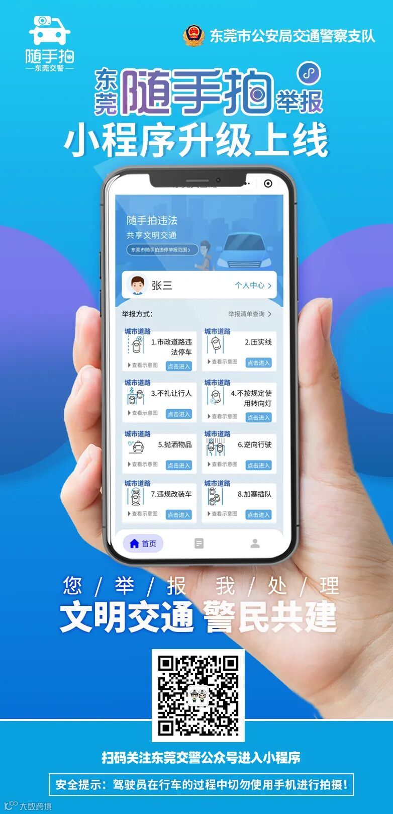打开微信搜索并关注“东莞交警”微信公众号,点击“发消息”进入对话框,点击“业务办理”-“随手拍”