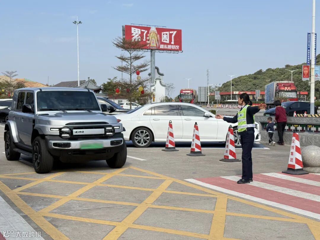 黄江服务区工作人员引导车辆有序停放