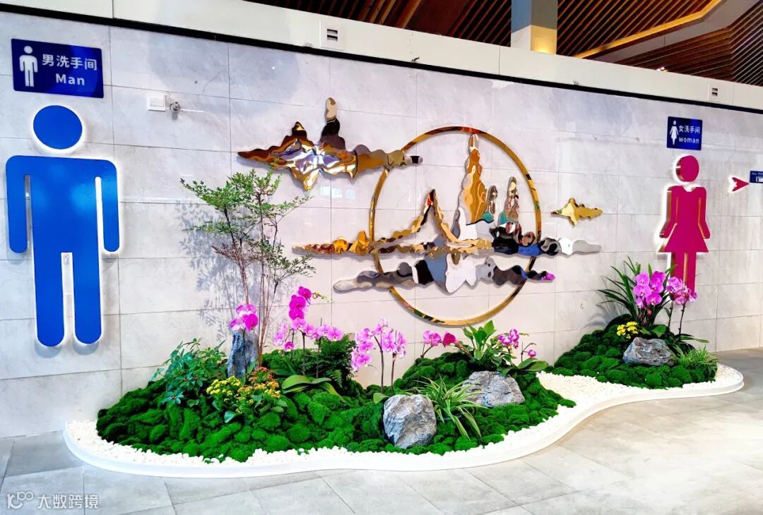 在卫生间过道增设微型园林景观,为服务区增添一份绿美,大大提升服务区环境品质,为司乘人员提供更好更舒适的休息体验。