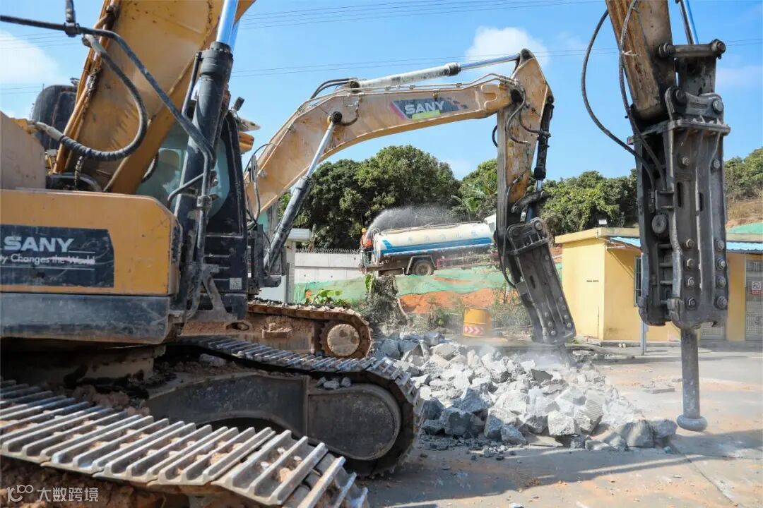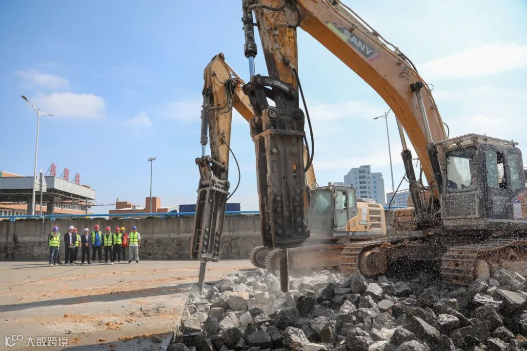 复工当天,在常虎高速改扩建5标大有园互通施工现场,工人们正在开展路基填筑料破碎施工作业:在莞深高速改扩建10标施工现场,工人们正在开展莞樟立交范围内拆桥破碎工作以及拼宽桥桩基施工作业。