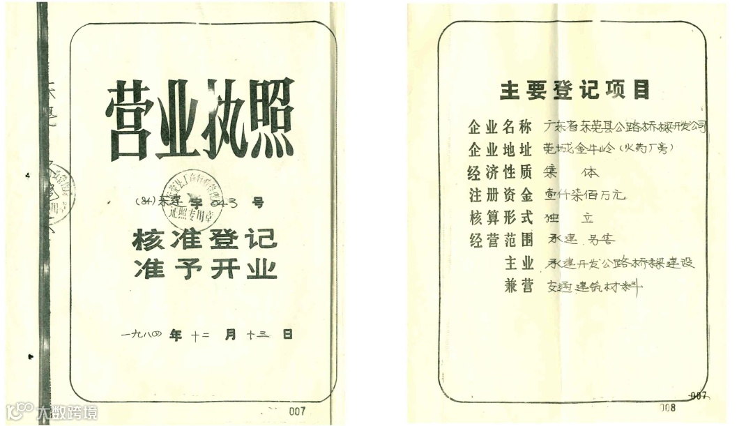 1984年12月13日,东莞县公路桥梁开发公司(现东莞交投集团)注册成立,其主要任务是承建开发公路桥梁建设,推动东莞县向农村工业化进军,促进经济建设全面高涨。东莞交投集团的发展,不仅是东莞改革开放的重要历史见证,也凝聚着东莞敢为天下先的改革精神。
