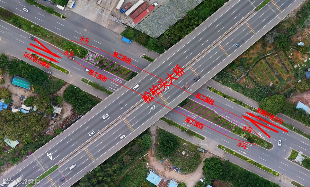 为保证松柏头大桥拼宽桥施工过程中,对既有富民南路的安全运营,需对施工影响范围内的富民南路进行半封闭交通管制,具体封闭区域如下:
