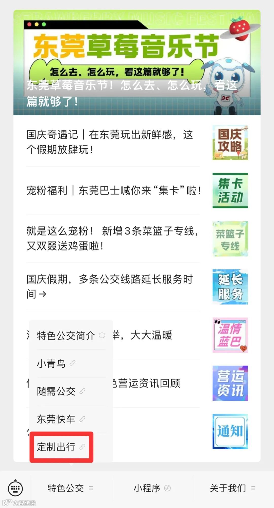 1.关注“东莞巴士”微信公众号