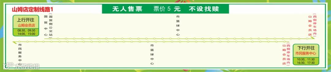 往山姆方向发车时间:08:30、09:30、14:00、15:00