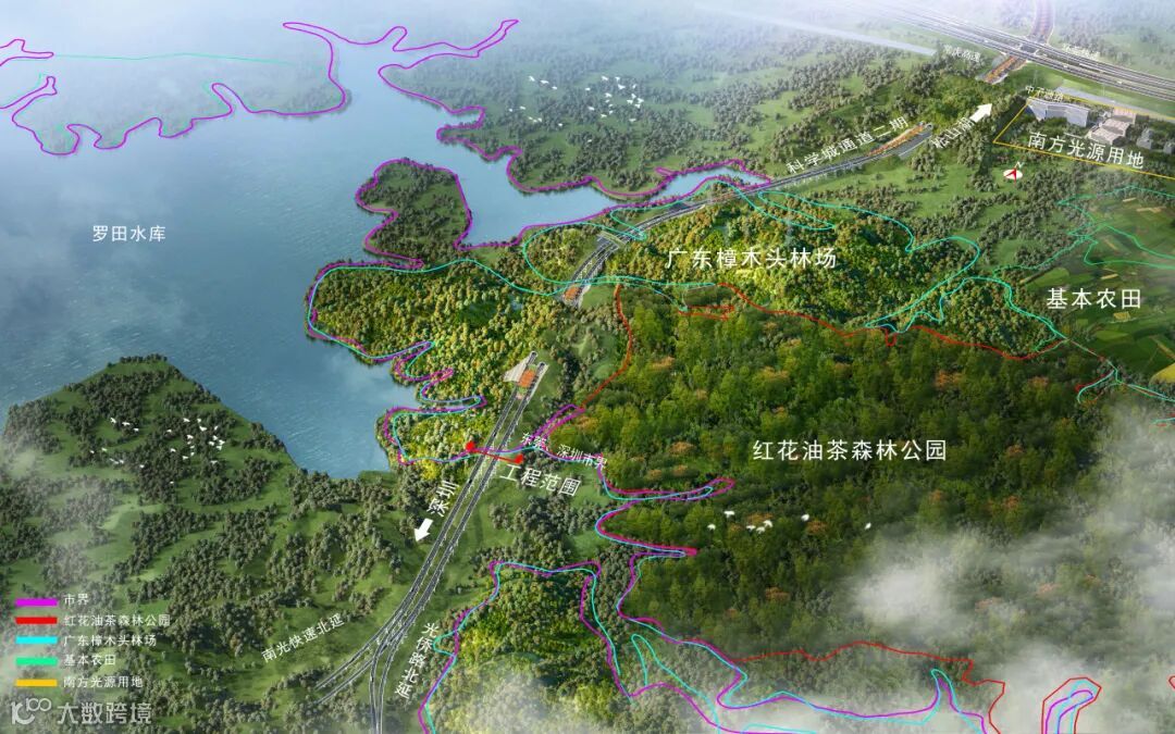 松山湖科学城至光明科学城通道(东莞段)二期工程起点接顺科学城通道一期,路线往西南以S型曲线穿过樟木头林场,避让罗田水库水域与红花油茶森林公园,最终到达莞深交界,接顺南光快速北延;光侨路北延线在深圳市界内,通过定向匝道接入南光快速北延,与之实现交通转换。该项目总长2.4公里,总投资7.87亿,工期为3年。届时,东莞松山湖、深圳光明两座科学城将实现“双向奔赴”——两地车程有望缩短至20分钟。