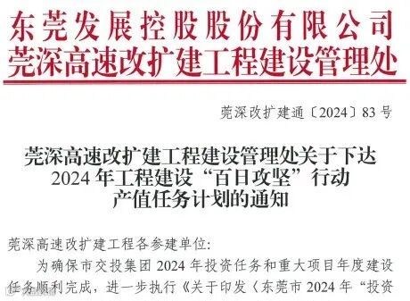 莞深高速改扩建工程管理处以红头文件形式明确下达各参建单位产值计划任务