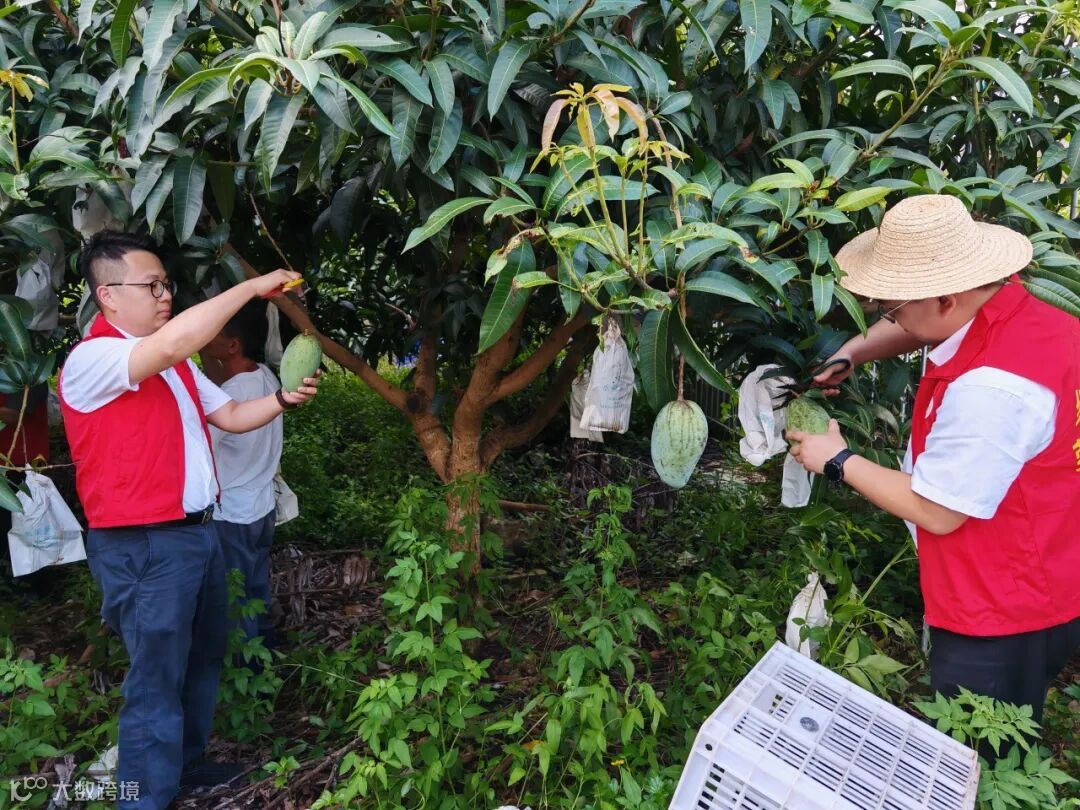 麒麟镇驻村干部帮村民采摘芒果