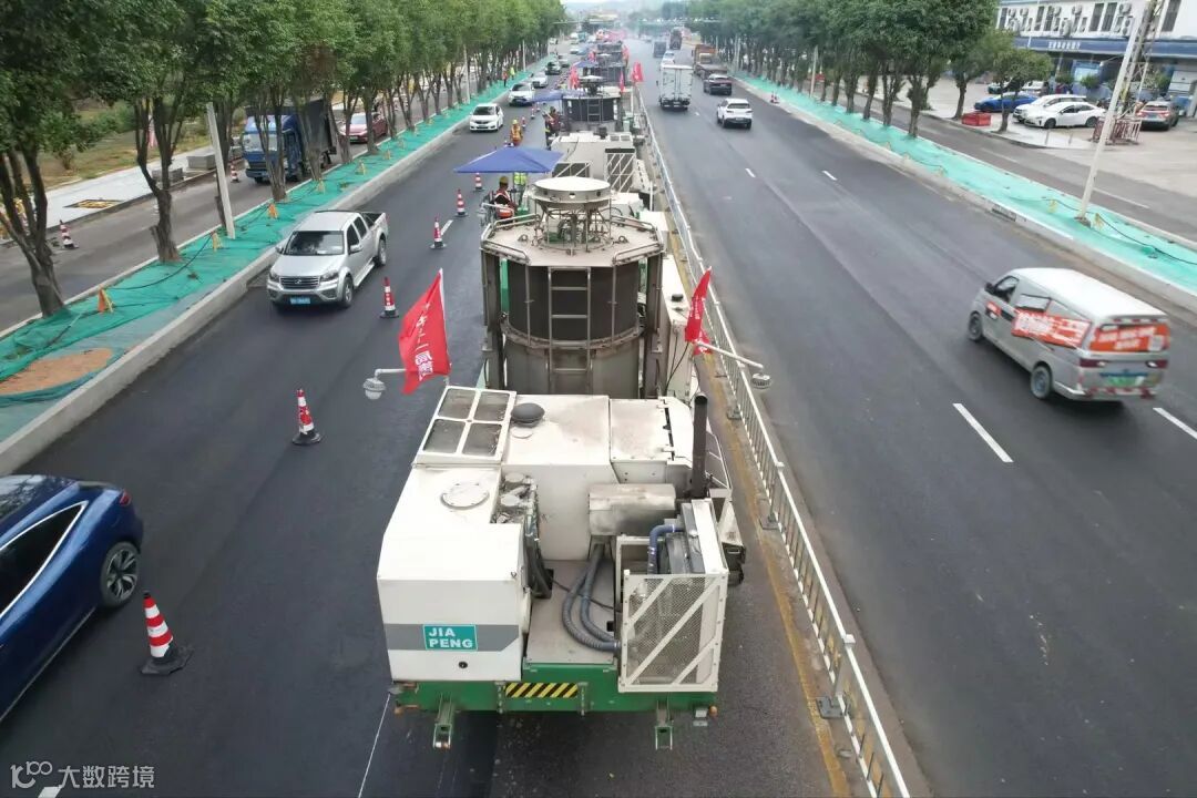 过去,维修路面要经历病害处置、沥青铣刨、清运废料、摊铺新料、碾压等繁琐步骤。现在,采用“热再生”工艺后,通过现场路面加热、耙松、提温,收集旧料中掺入一定数量的新沥青混合、再生剂,复拌摊铺碾压,不需要搬运废料及废弃物堆放场地,原路面沥青混合料可达100%再生利用。
