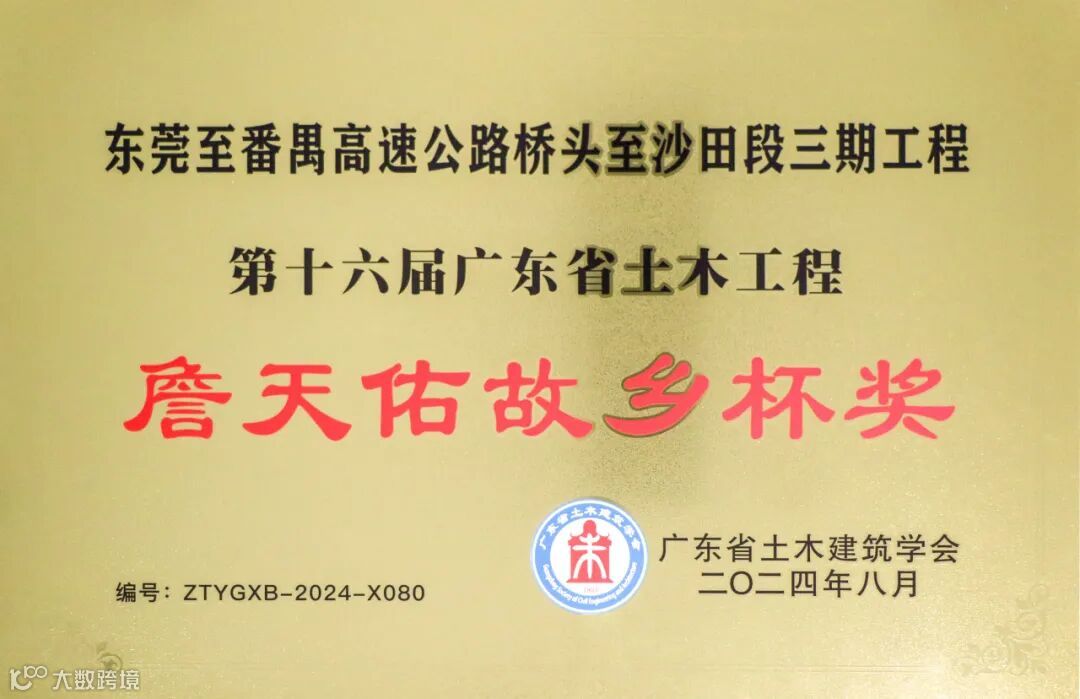 近日,广东省土木建筑学会公布了第十六届广东省土木工程詹天佑故乡杯奖获奖项目名单,由东莞交投集团下属市路桥公司承建的东莞至番禺高速桥头至沙田段三期工程(以下简称“莞番高速三期工程”)、水乡大道延长线工程通过评审并获得殊荣。