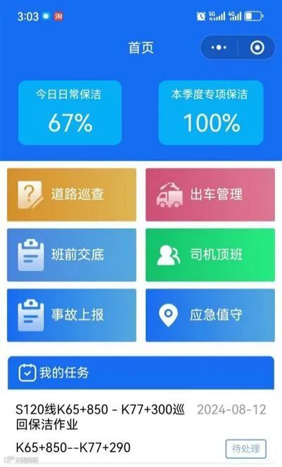 智慧养护方面,以国省县道保洁项目为试点,开发信息化管理平台,主要涵盖项目管理、人员管理、车辆管理、安全管理、计量资料等功能,实现工作效率与管理水平“双提升”,同时与市公路事务中心的信息化系统实现数据共享。