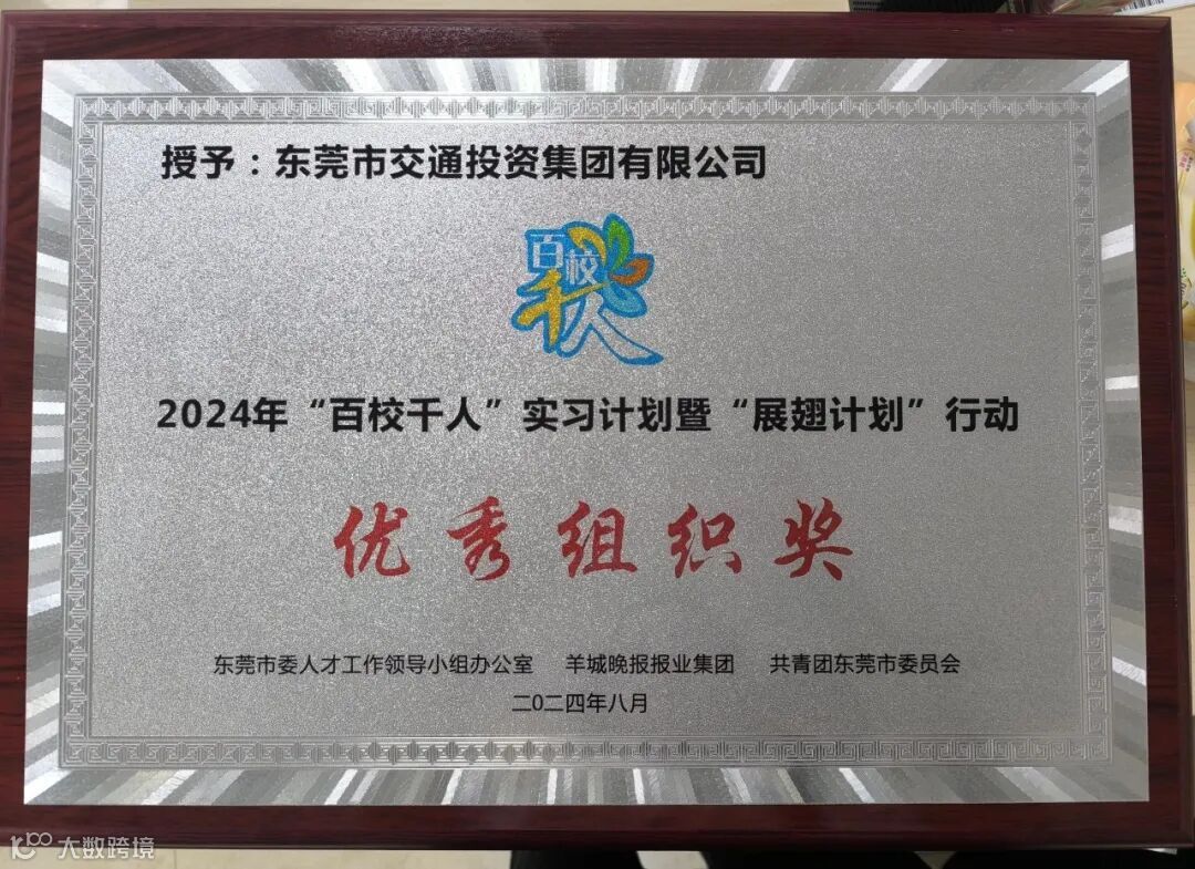 为贯彻落实市委“人才强市”战略部署,响应我市人才品牌和人才宣传项目共建号角,东莞交投集团已连续三年组织参与“百校千人”实习计划,共接收52名海内外重点高校学生来集团实习,曾获2023年度“展翅计划”港澳台大学生实习专项行动优秀单位称号,是唯一上榜的东莞市属国企。今年,集团根据需求提供了多个专业实习岗位供实习生挑选,累计收到简历超3000份,并从中择优选择了专业对口、具有发展潜力的11名实习生到集团公司各部室实习锻炼,一系列工作成效得到活动主办方肯定,让集团获得了2024年“百校千人”实习计划暨“展翅计划”行动的优秀组织奖。