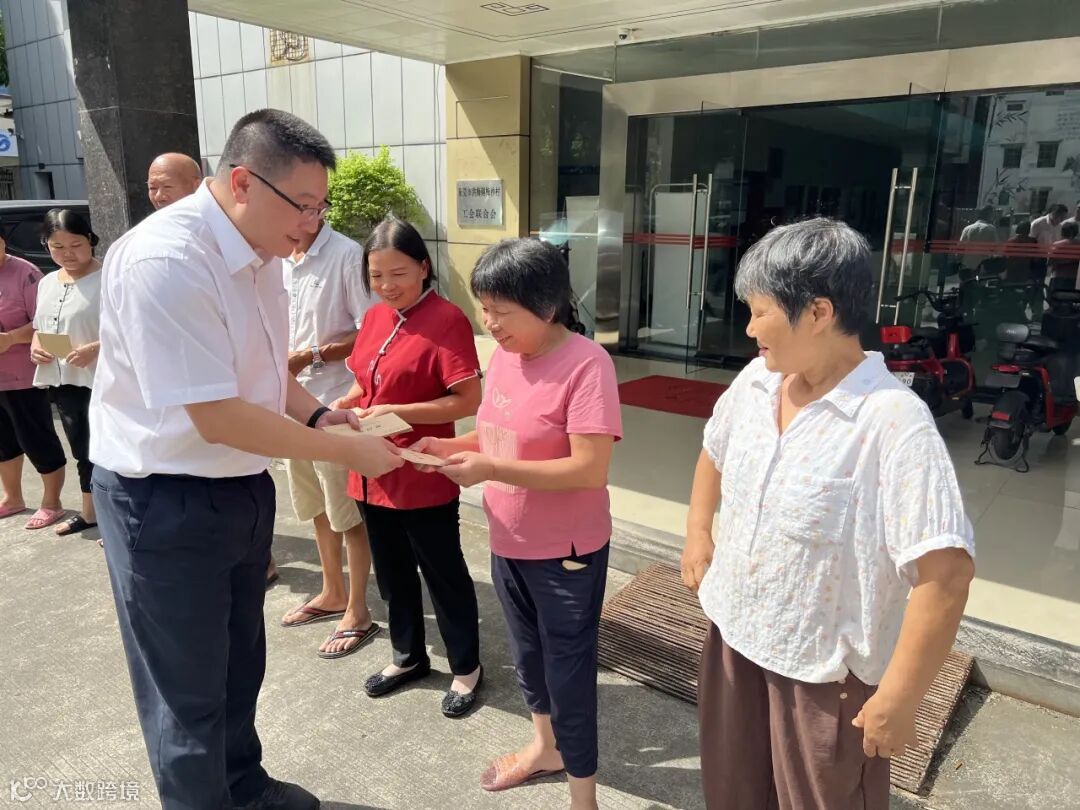 集团调研慰问组首先看望了梅沙村低保户代表,与低保户代表深入交流,最后为他们送上集团机关干部职工捐赠的慰问金。随后,与梅沙村两委干部进行座谈。