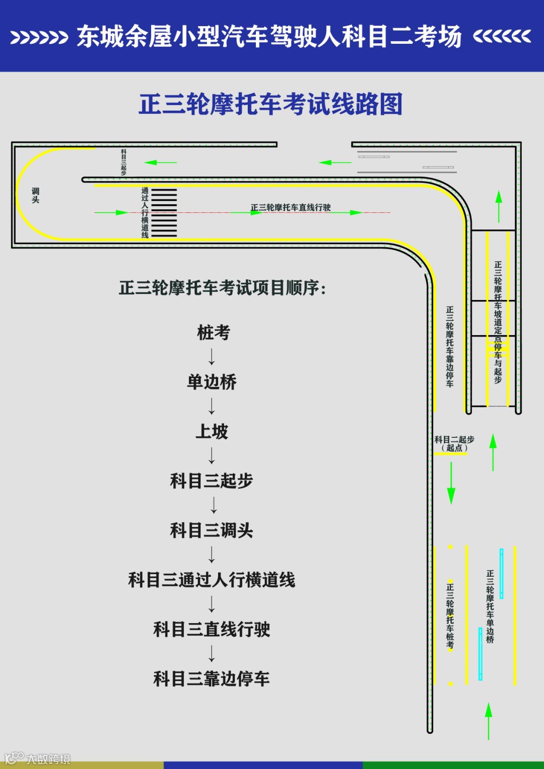 二轮、三轮摩托车的考试线路稍有不同,以下为场地考试线路图。干货!建议收藏提前熟悉!