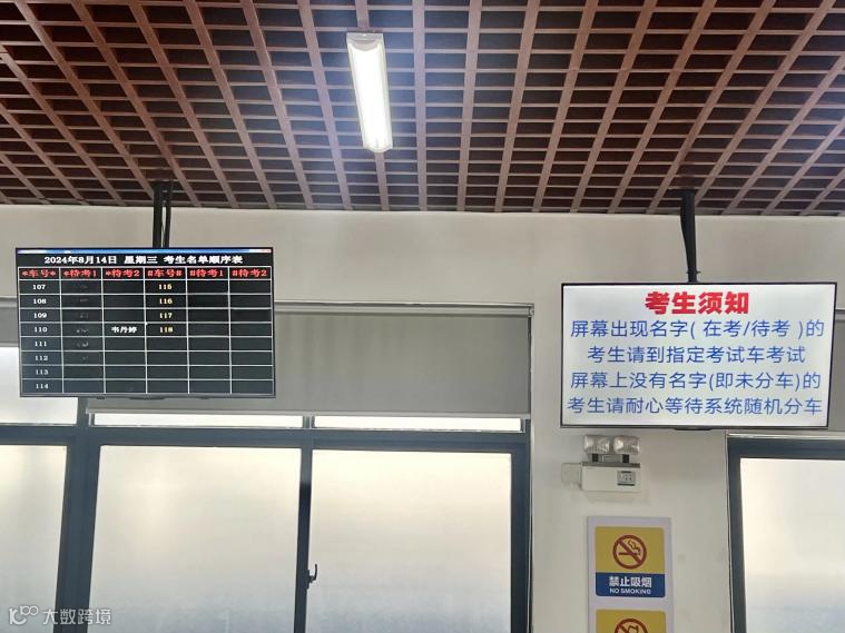 3.进入候考区,领取“摩托车考试”专用反光衣,留意电子分车屏幕个人信息并找到相应考试车号;