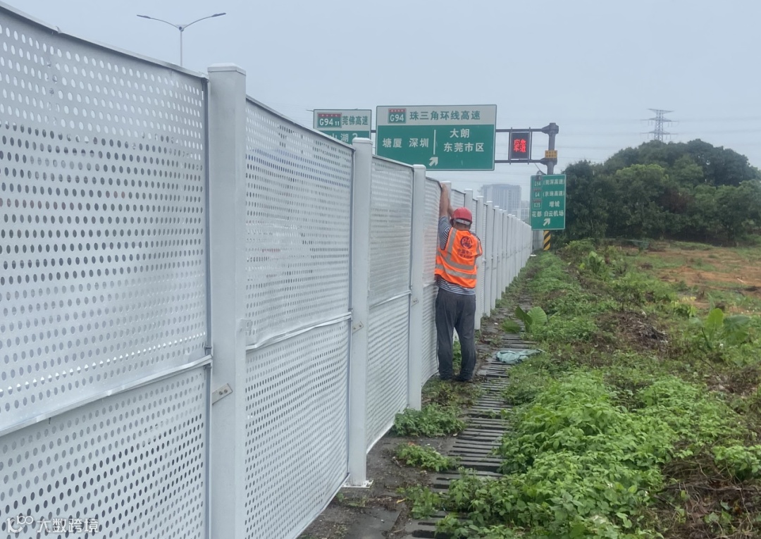 常虎高速改扩建项目土建5标作业人员正在沿线检查冲孔板情况