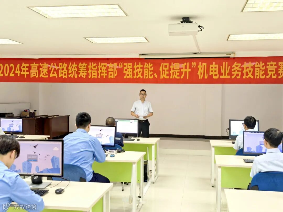 高速公路机电系统是保障高速公路实现高速、安全、舒适功能的必要组成部分。随着高速公路路网规模的不断扩展和新技术的应用,机电系统的复杂性和智能化水平在不断提升,这一发展趋势对机电设备维修工作提出更高的要求和挑战。高速公路机电系统主要包括高速公路收费系统、监控通信系统、供配电系统、照明系统、隧道机电系统、水电五金系统。为促进机电运维队伍业务全面强起来,本次技能竞赛综合融入各系统的专业知识和实操业务,分为上机笔试和实操比拼两个竞赛环节。