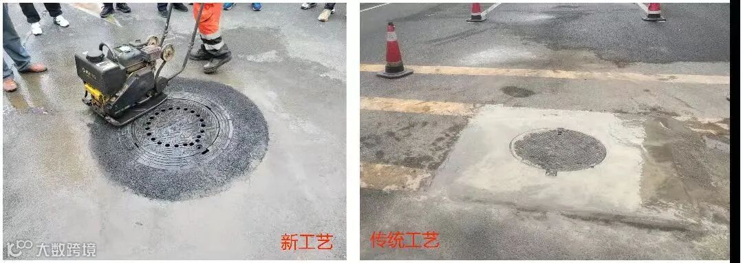 在省道S120石龙段开展“水补王”+“防沉降井盖”两种新型材料的应用试验