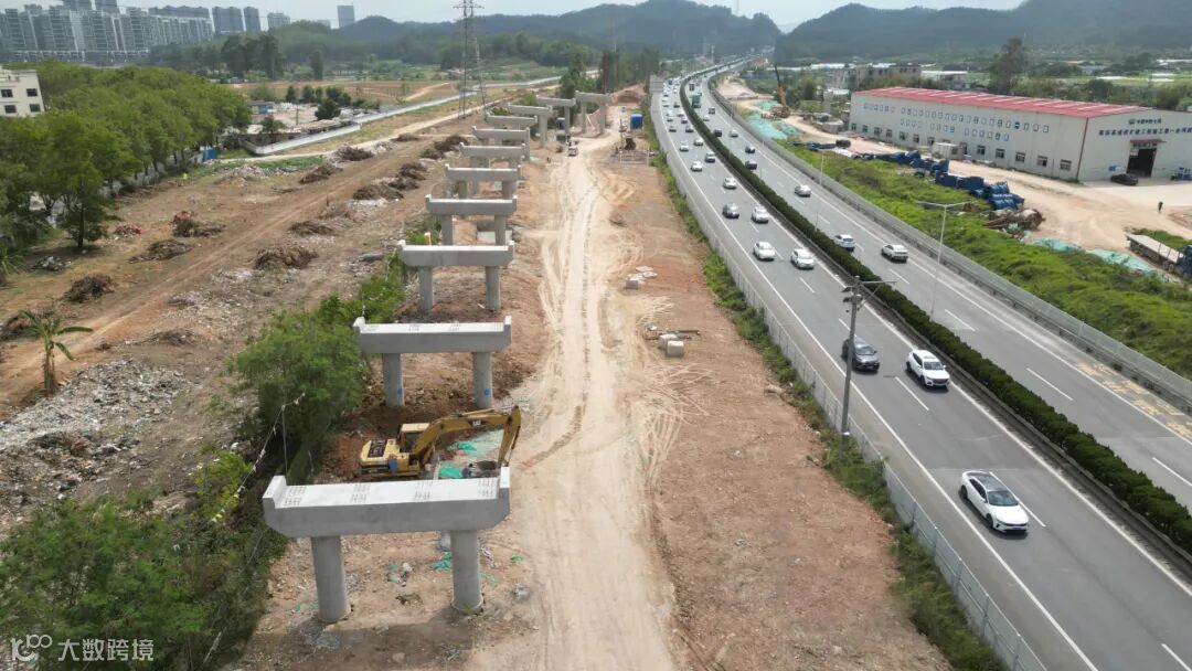 环莞快速三期与莞番高速共线段工程目前施工现场桥梁工程已完成,正在开展路面工程施工。