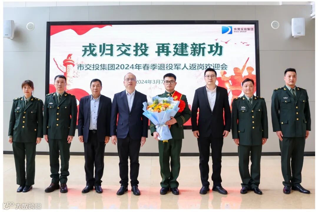 3月7日,东莞交投集团举行2024年春季退役军人返岗欢迎会,欢迎光荣退伍回到工作岗位上的熊昱童同志。熊昱童是东莞巴士公司东部分公司质量管理员,是集团第一个入伍的大学生员工,经过两年军旅生涯,今年3月退役返岗。东莞交投集团党委委员、副总经理袁国超参加活动并讲话,东莞巴士公司东部分公司党支部书记、总经理任峰作为所在单位代表在欢迎会上发言。