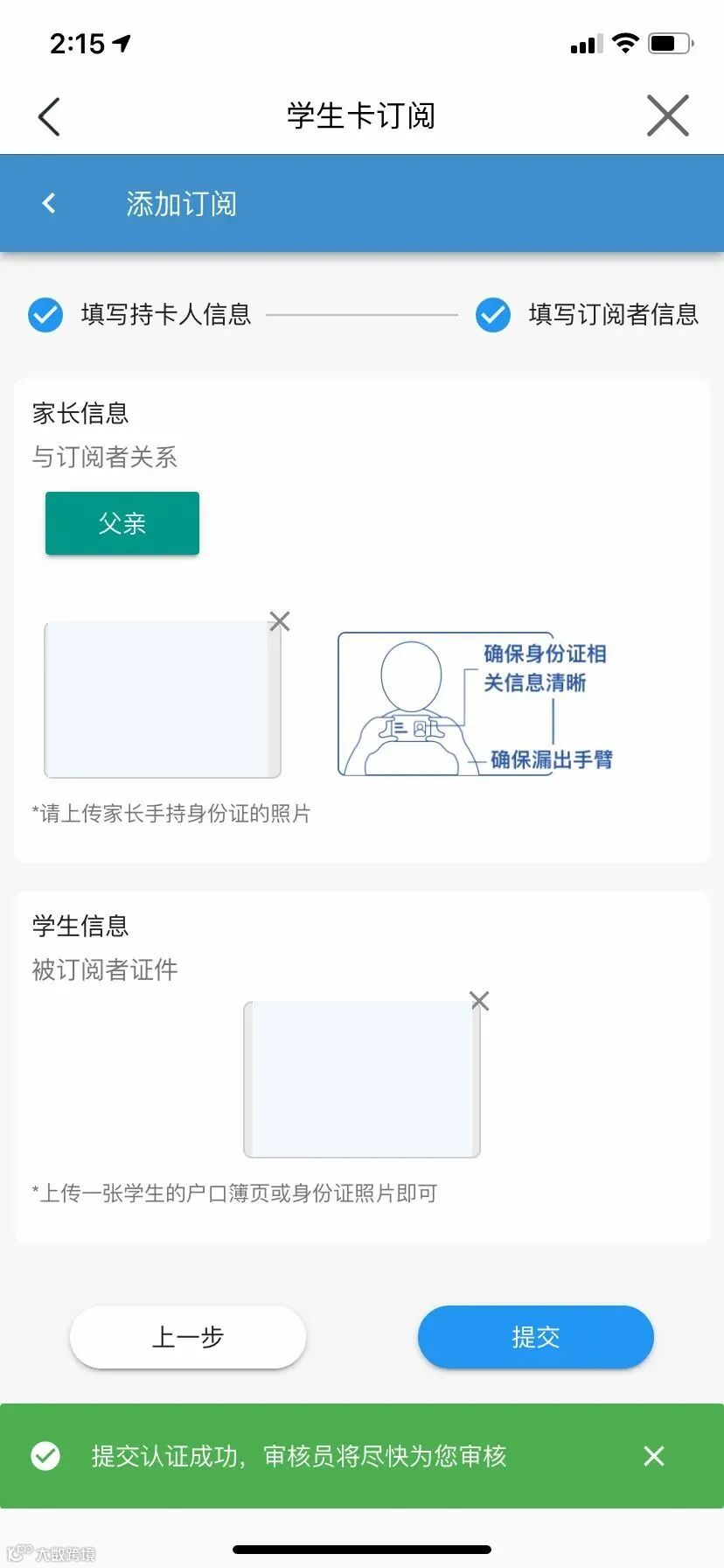 ① 证明材料上传:上传一张被订阅人的户口薄本人页或身份证照片即可。