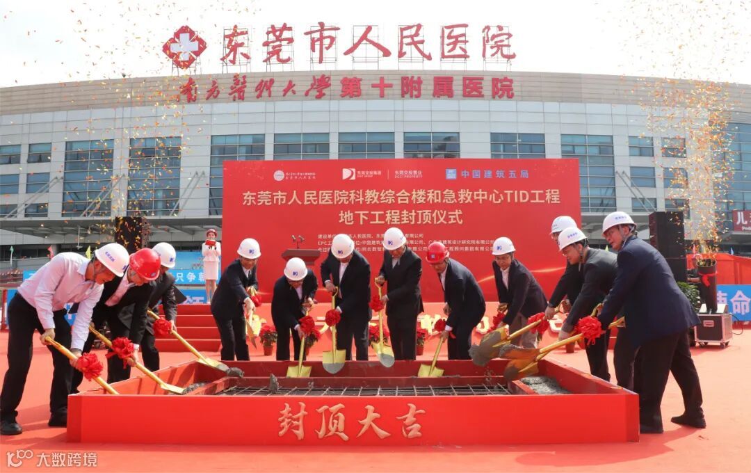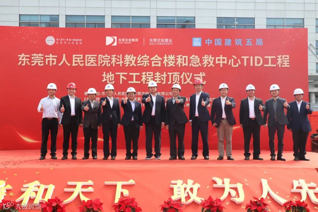 东莞交投集团党委书记、董事长罗沛强,东莞市人民医院党委书记蔡立民、院长袁耀钦,东莞市万江街道办事处主任黄冠煊,中建五局华南公司党委书记、董事长王永锋,广东省院副院长温文浩等领导嘉宾出席此次封顶仪式。