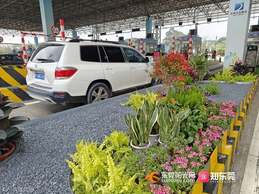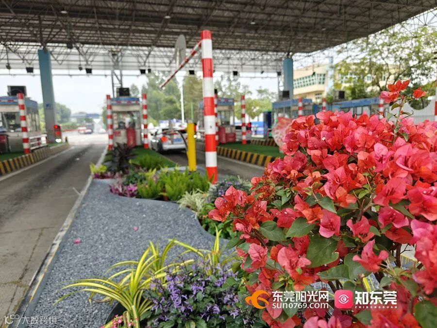 紧接着,记者又驱车来到莞深高速上屯收费站,在车辆即将驶入收费岛时,映入眼帘的同样是一片“装红点绿”的美丽绿植景象。“我们在上屯收费站改造点总共有6处,松山湖收费站改造点总共有8处,改造内容主要包括在出入口新建了广场景观小品、增加了层次丰富的植物组团。其中,在收费岛岛头,我们增设了绿化小景、升级了收费岛花架,同时还将出入口广场分隔带石墩升级成为绿化花箱,并在波形护栏上加挂了时花。”莞深高速上屯收费站站长黎庆驹向记者介绍道。