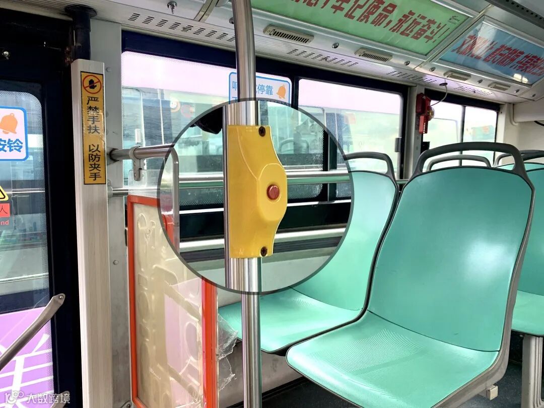 “响应式停靠”线路的车辆在下客门两侧扶手立柱上均安装按铃。