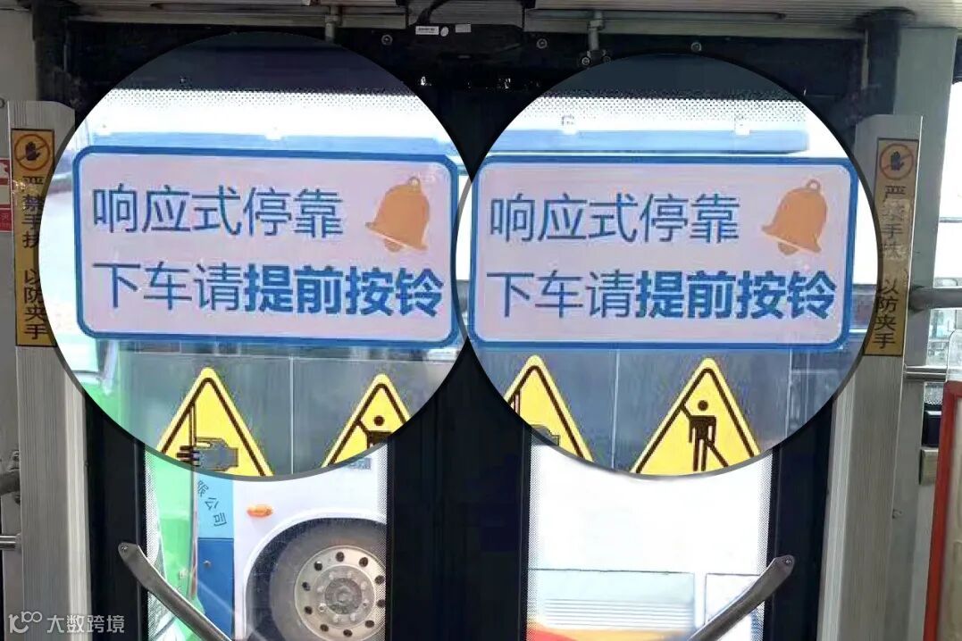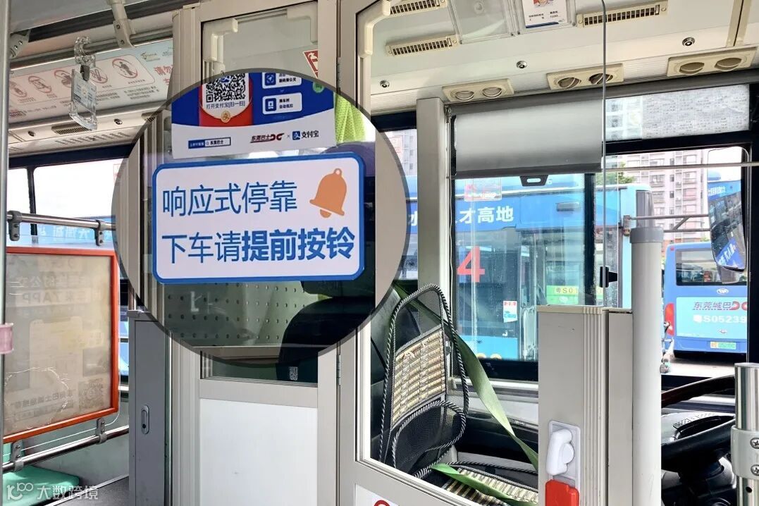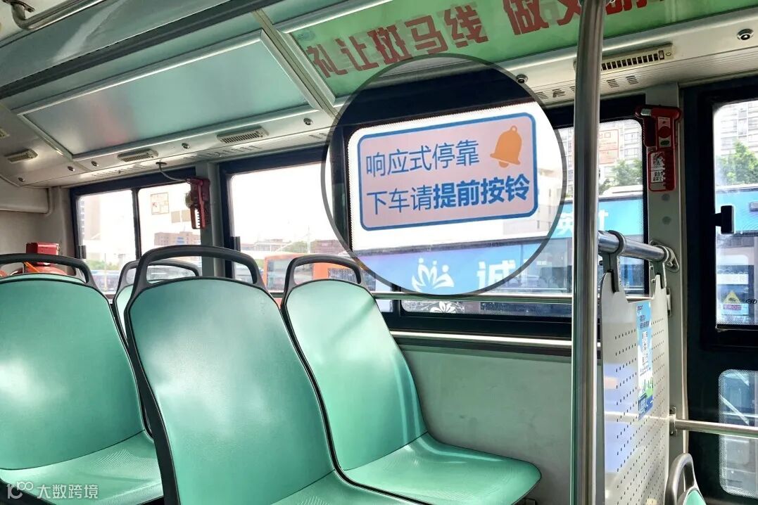 ▶乘车时:留意车内张贴的“响应式停靠”提示标语以及下客门柱上“下车铃”位置。若要下车请提前按下车铃或口头告知车长。若不小心坐过站,请尽快按下车铃或向车长示意需要下车,车辆将在下一站停靠。