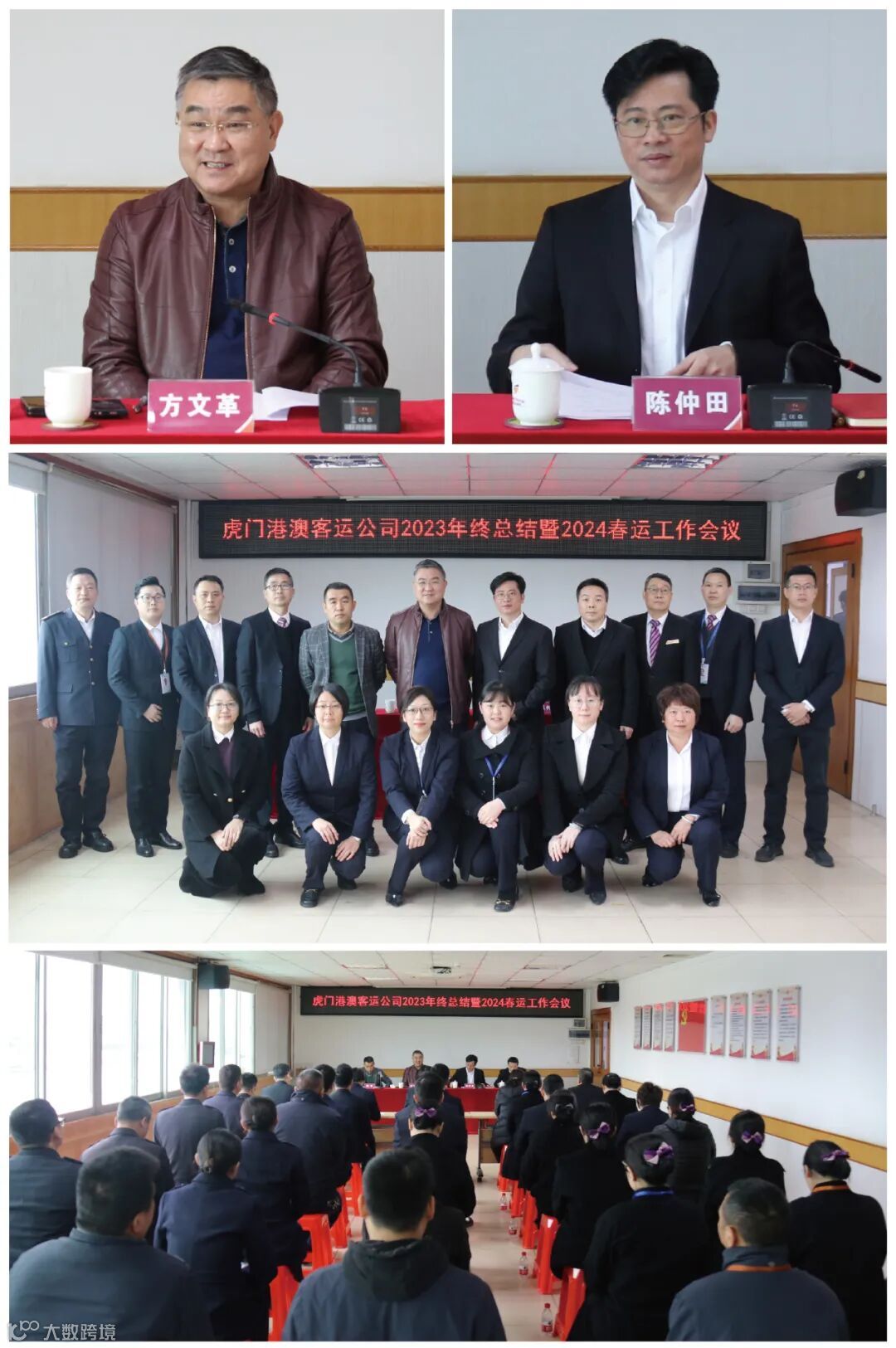 1月23日上午,虎门港澳客运公司召开2023年年终总结大会暨2024年春运工作会议。集团公司党委委员、副总经理方文革莅临指导,公司领导班子成员及员工代表参加会议。