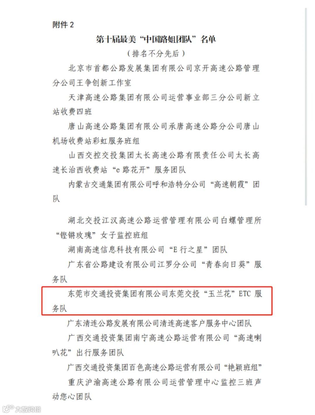 10月11日下午,中国公路学会公布了第十届最美“中国路姐”名单,东莞交投“玉兰花”ETC服务队荣获第十届最美“中国路姐团队”称号。